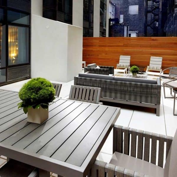 The hustling and bustling Big Apple calls for modern furniture, and at Cambria Hotel in Times Square, the layout here definitely screams contemporary look. With a grey and brown colour template and simplistic design, the tables and chairs chosen make guests feel they are in a big city yet right at home.