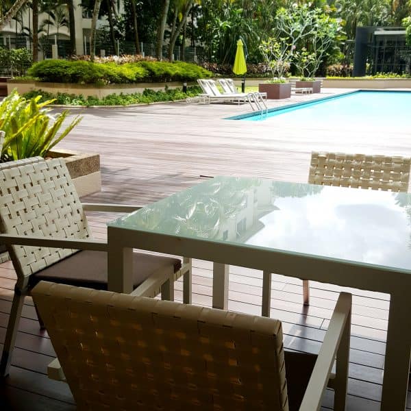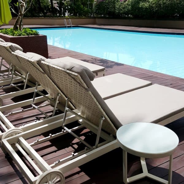 As a high-rise building in the city, one of the appeals of living here is having a simple yet great outdoor environment, and they certainly delivered. The white rattan chairs complement the blue hue of the pool so nicely, as well as the beach chairs beside it. Residents will undoubtedly spend most of their time here, to chase their stress away.